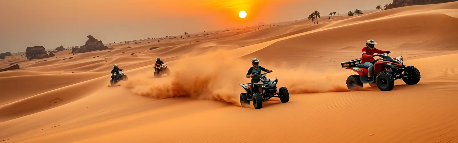 Booking your Sharjah desert adventure is simple. Choose your preferred date, select your vehicle — single-seater, double-seater, or kids’ quad — and reserve online or via WhatsApp. Optional hotel pickup and drop-off make your desert experience convenient and hassle-free. Whether you want an adrenaline-packed ride, a scenic sunset tour, or a full combo desert safari, your evening quad bike adventure awaits.